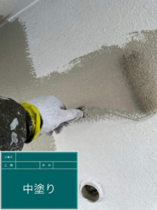 下塗り、中塗り、上塗りと工事をすすめています。 |