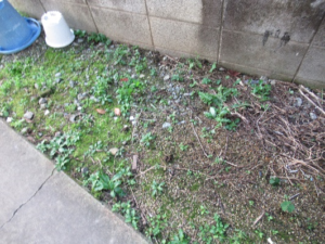 土の部分をコンクリート土間で段差解消し通路にする工事です。