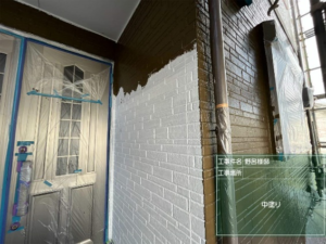 外壁は高圧洗浄で汚れをしっかりおとし、下塗り、中塗り、上塗りと工事を進めていきます。
