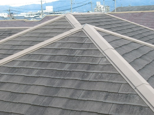 外壁や屋根の方にも色褪せ、藻、コケ等が発生して傷んでいる状態でした。