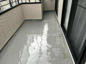 既存の状態も見極めた上で、今回は塩ビシート防水の上からでもウレタン防水が可能なZHEK工法にて防水を行ないました。