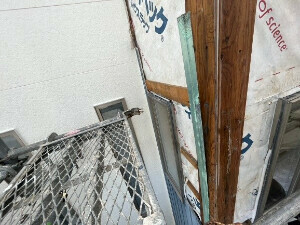 剥がしていくと、胴縁、防水シートにカビなどが発生していました。幸いにもシートの内側には傷みが発生していませんでした。
