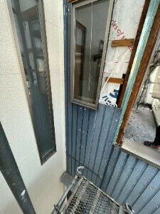 サイディングの張替は縦張り部分を張り替えていきます。(青い部分)