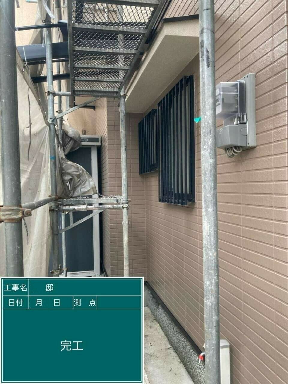 施工後は艶がしっかりと出ており、雨水を弾く性能も回復。建物全体を引き締めるような、落ち着いた印象に仕上がりました。