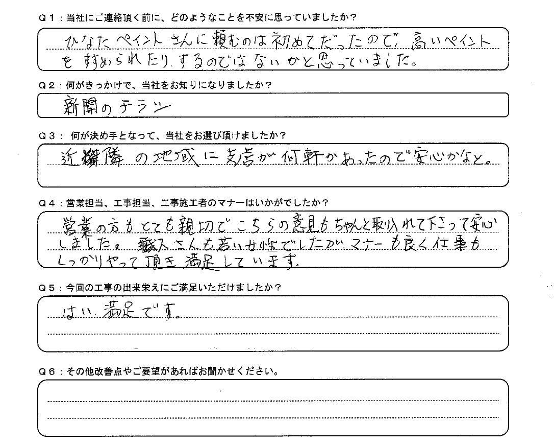 施工にあたっての業者選びや費用に不安をお持ちのなか、ご納得いただけるコストで弊社に決めて下さり大変嬉しく思います。