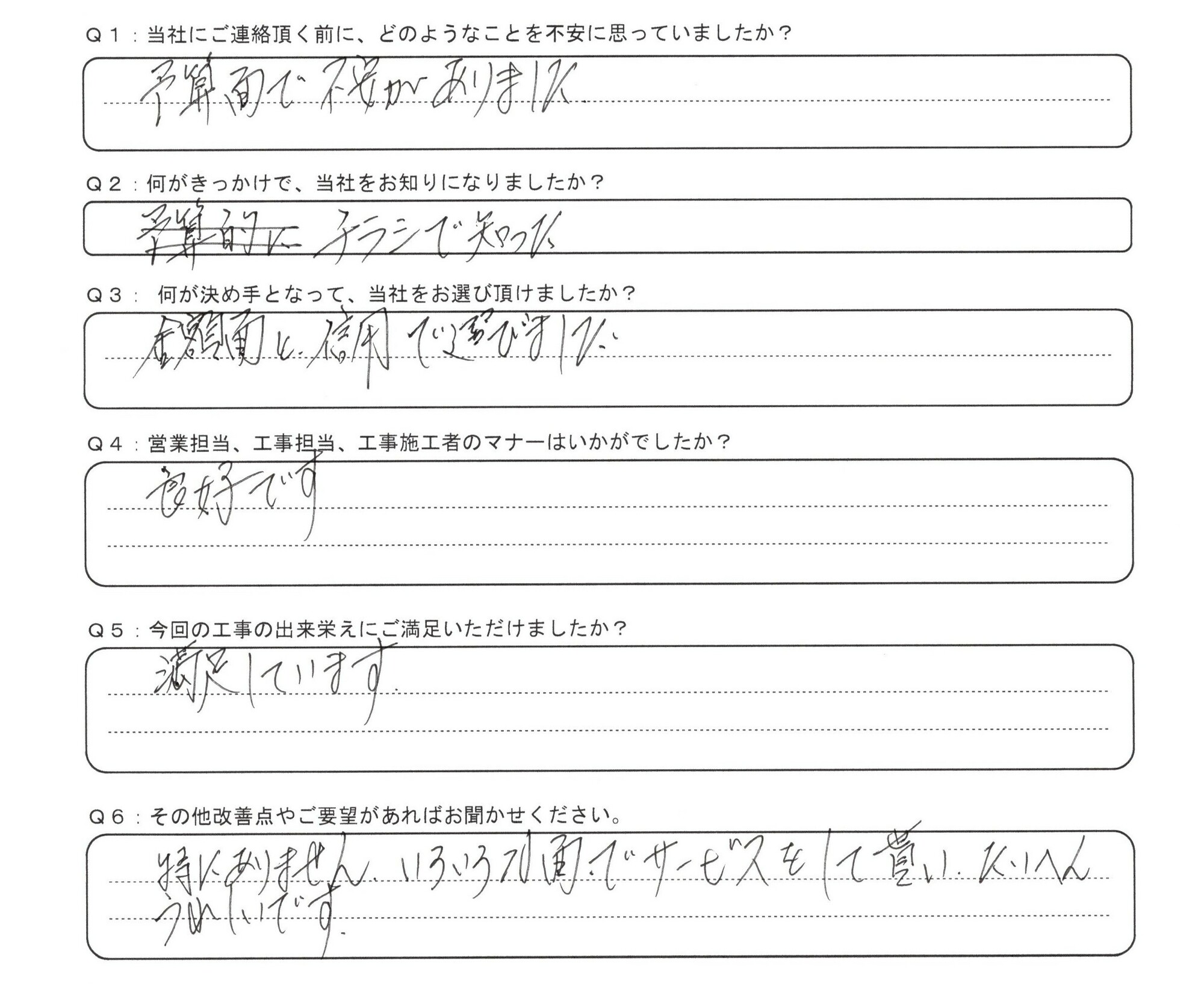 今回の工事の出来栄えにご満足いただけましたか?