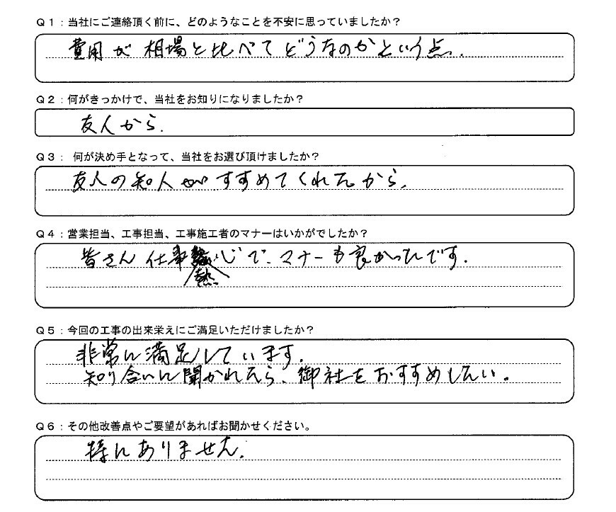 3社相見積をとりましたが、値段が適正であったのと、