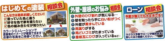 はじめて塗装する方、外壁や屋根についてお悩みのある方、また価格や予算について心配の方など、お気軽にご相談ください。