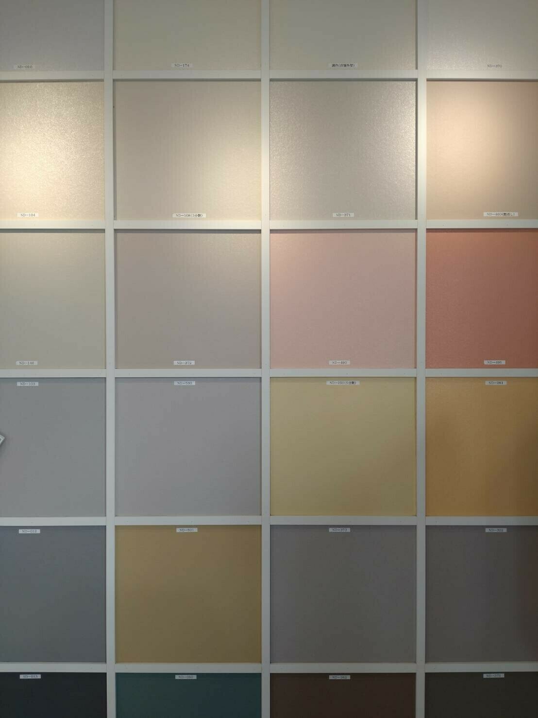カタログなどの色見本は小さすぎて実際の印象とは異なることが多いです。A4サイズ以上のサンプルやカラーシミュレーションを活用しましょう。ひなたペイントのショールームではそれぞれの色の見本板をそろえております。